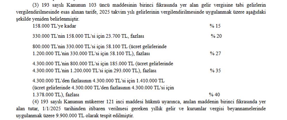2025 yılında esas alınacak gelir vergisi dilimleri Resmi Gazetede yayımlandı