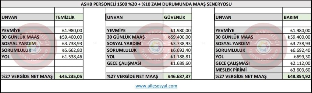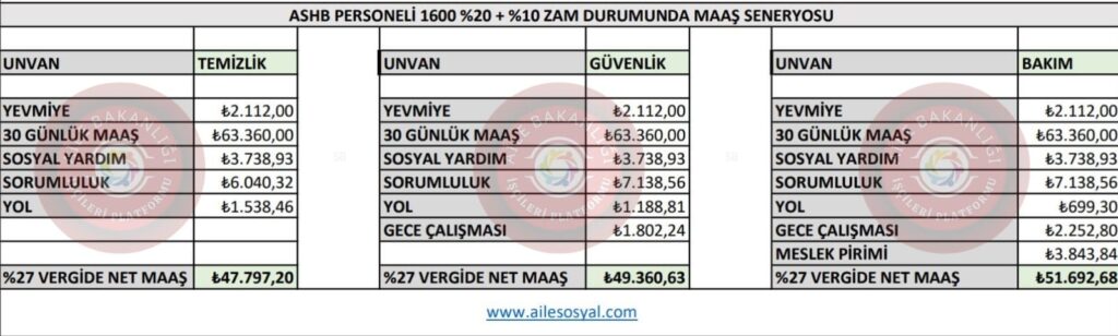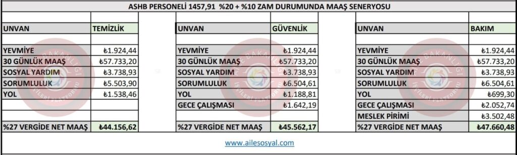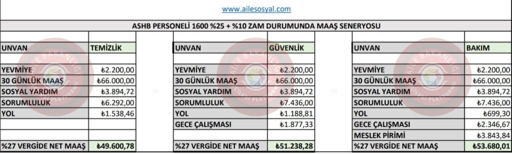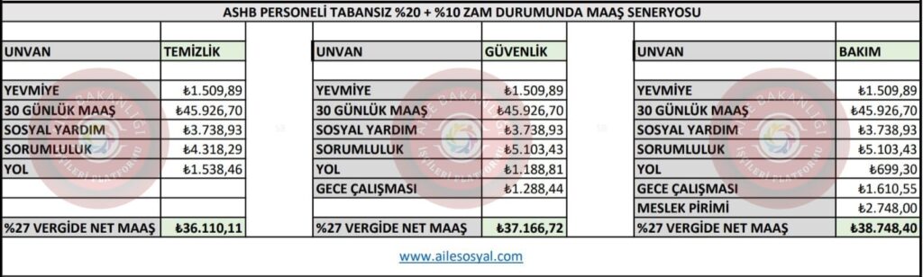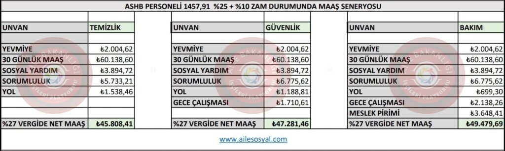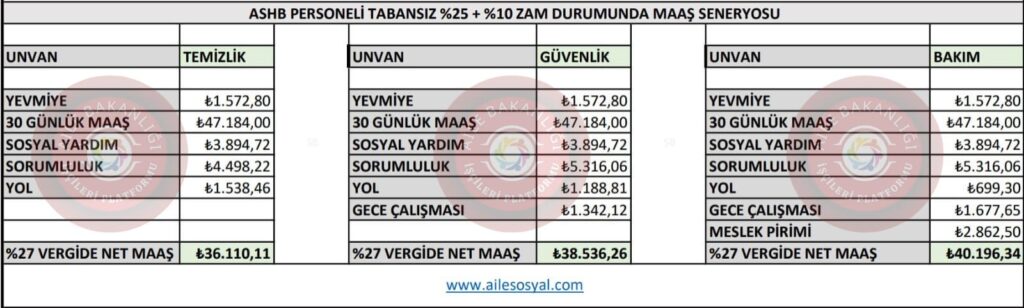 Aile Bakanlığı 17 Nolu işkolu için konuşulan dile getirilen mevcut durumdaki rakamları senaryolar halinde net tablolaştırdık.