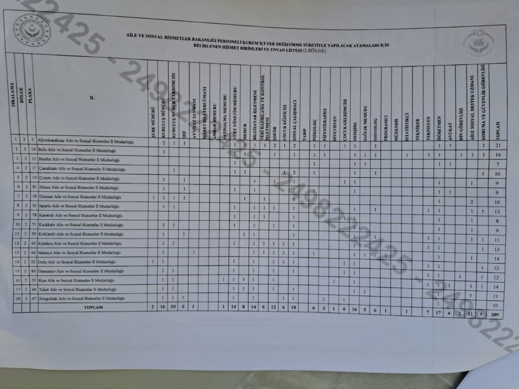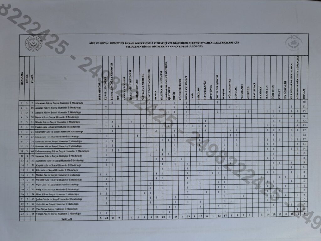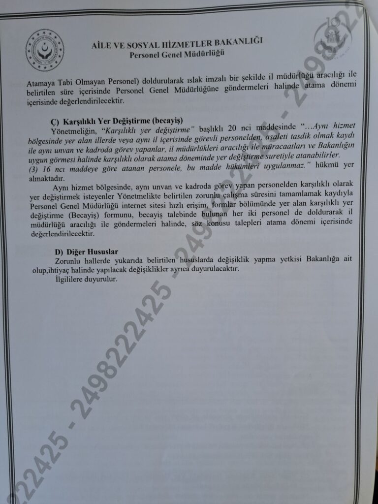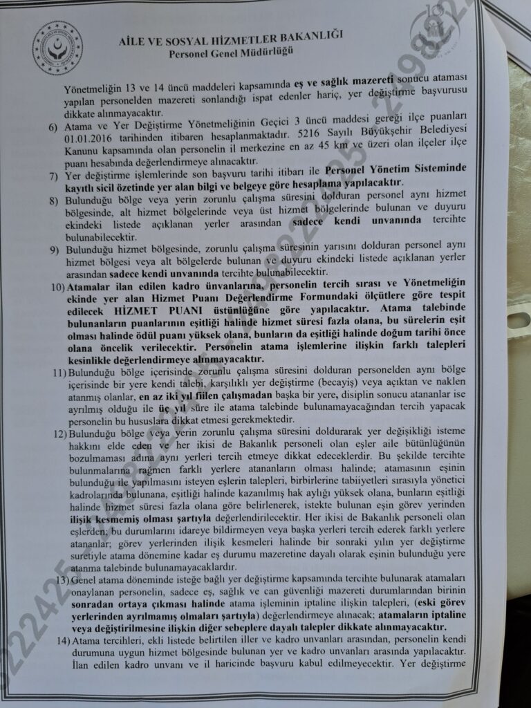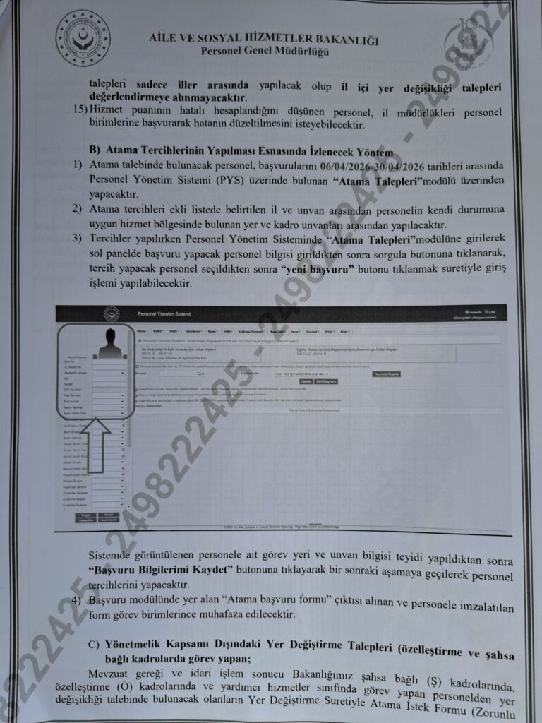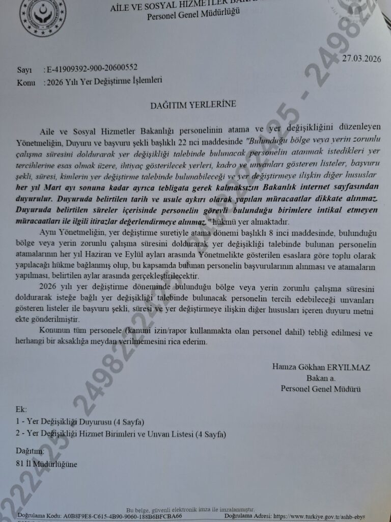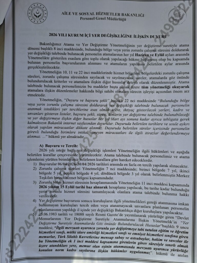 AİLE VE SOSYAL HİZMETLER BAKANLIĞI 2026 YILI YER DEĞİŞİKLİĞİ SÜRECİNİ BAŞLATTI