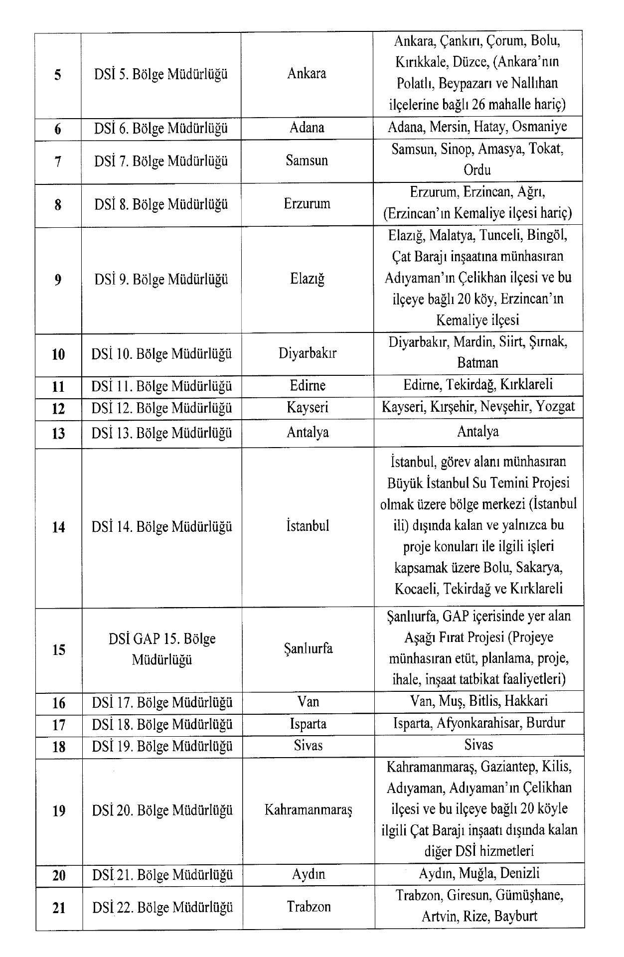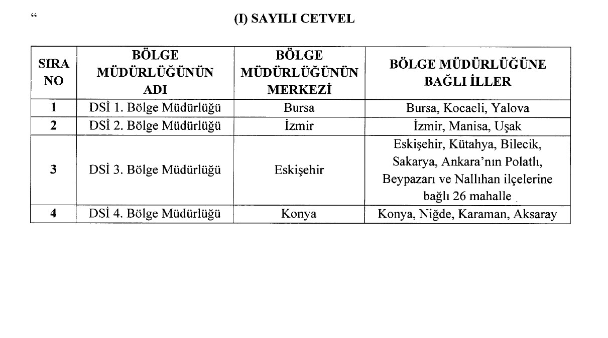 DSİ’nin taş teşkilatında düzenlemeler yapıldı. Yayımlanan kararnameyle 12/6/1993 tarihli ve 93/4539 sayılı Bakanlar Kurulu Kararı, 13/6/1998 tarihli ve 98/49270 sayılı Teşkilatta Değişiklik Kararı, 10/11/2008 tarihli ve 2008/10538 sayılı Geçici Taşra Teşkilatı Kurulmasına Dair Karar yürürlükten kaldırıldı. DSİ’nin teşkilatında yer alan 25 bölge müdürlüğü ise 4 sayılı CBK’ya eklendi. İşte Resmi Gazetenin 21.11.2025 tarihli nüshasında yayımlanan 190 sayılı CBK