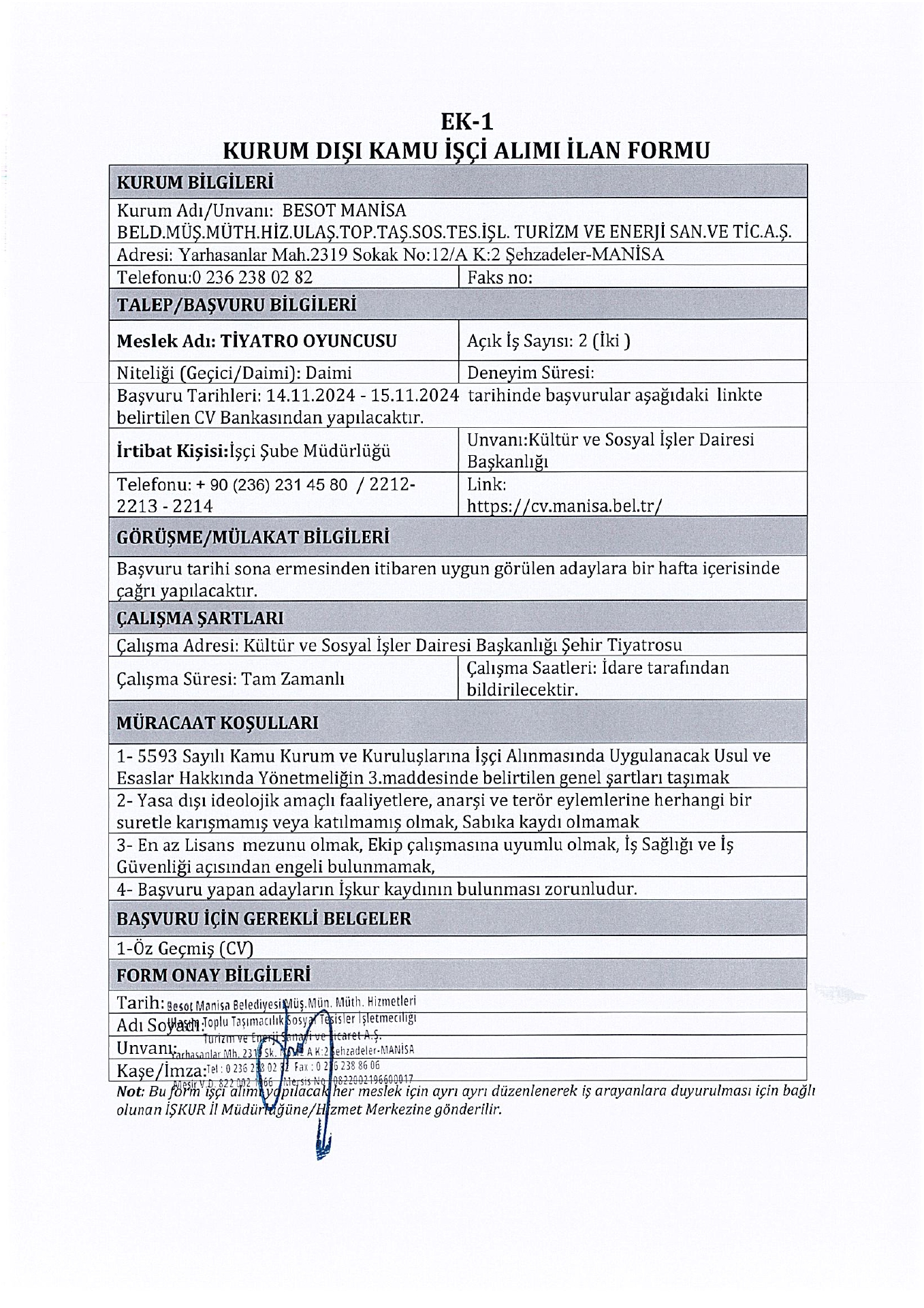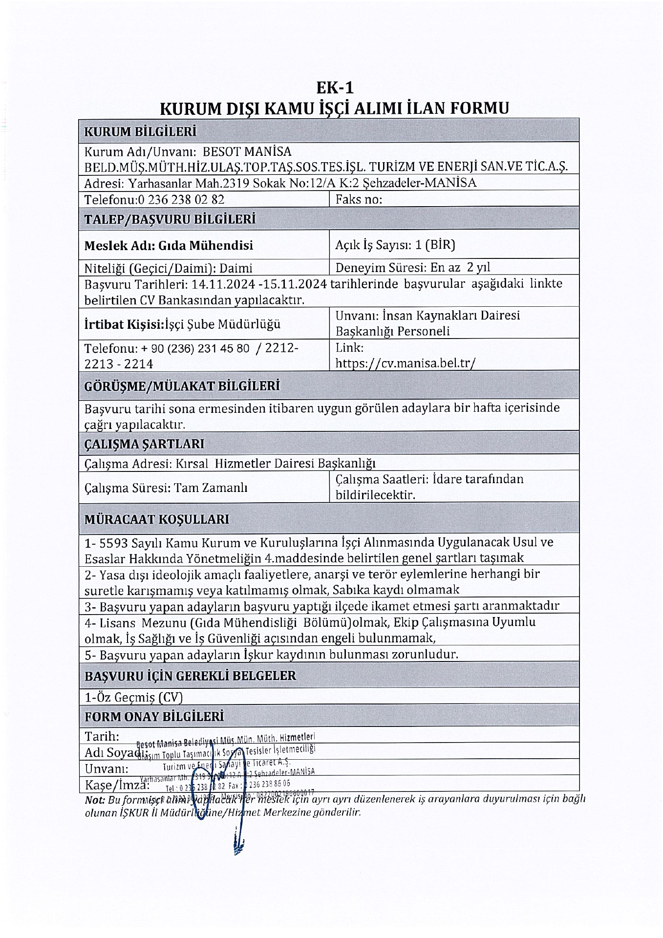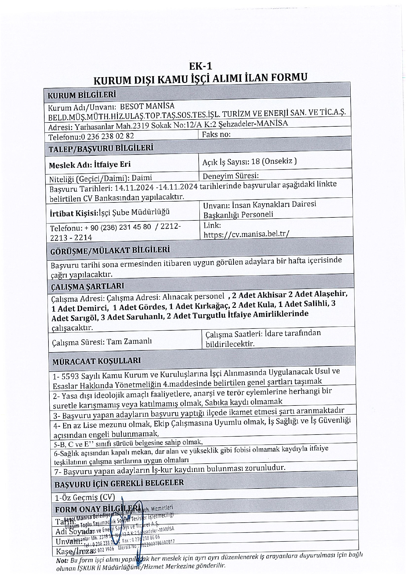 Manisa Besot 21 İşçi Alacak. Son başvuru tarihi 14 kasım 2024