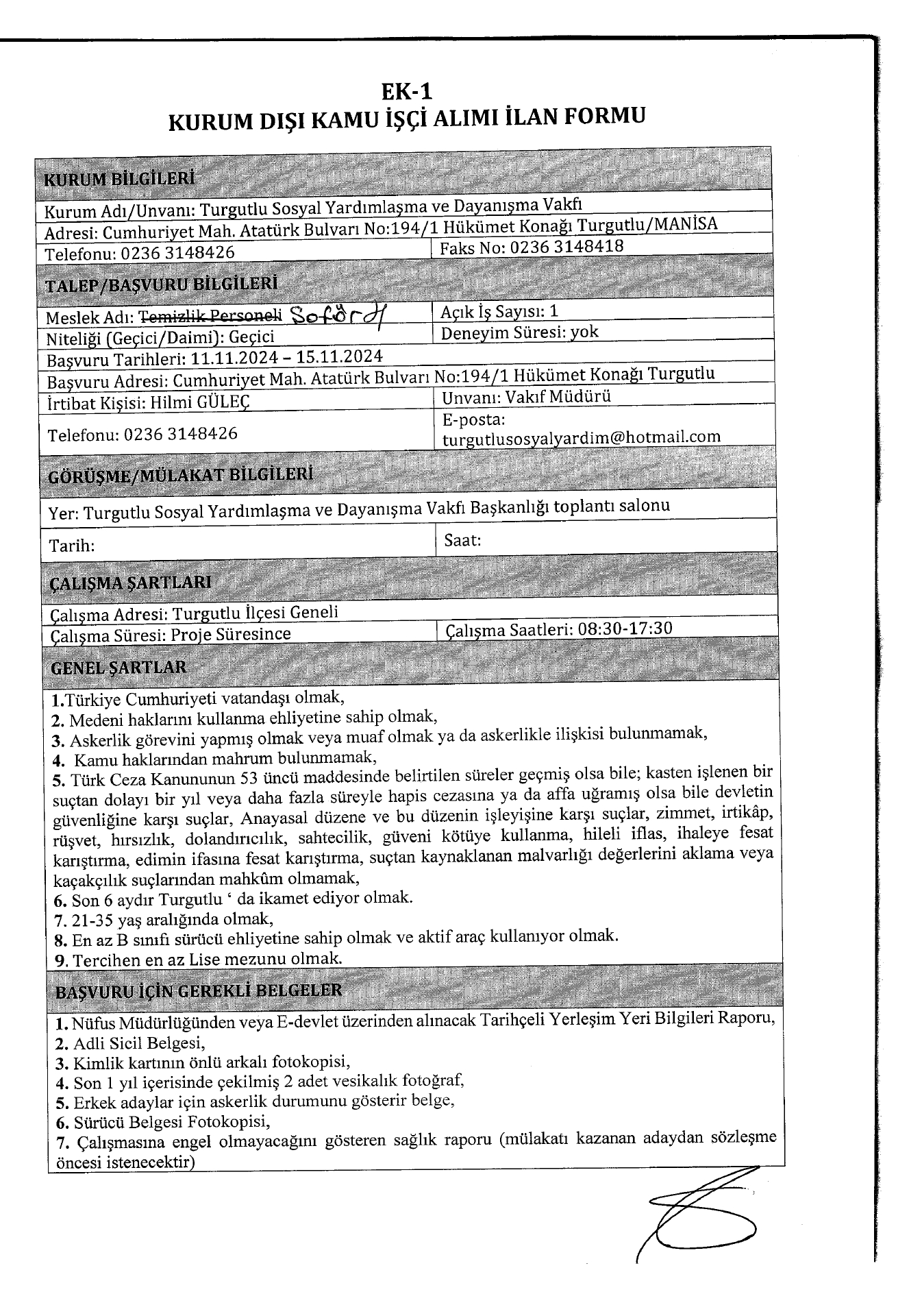 Manisa Turgutlu SYDV Geçici 1 İşçi Alacak. Son başvuru tarihi 15 kasım 2024